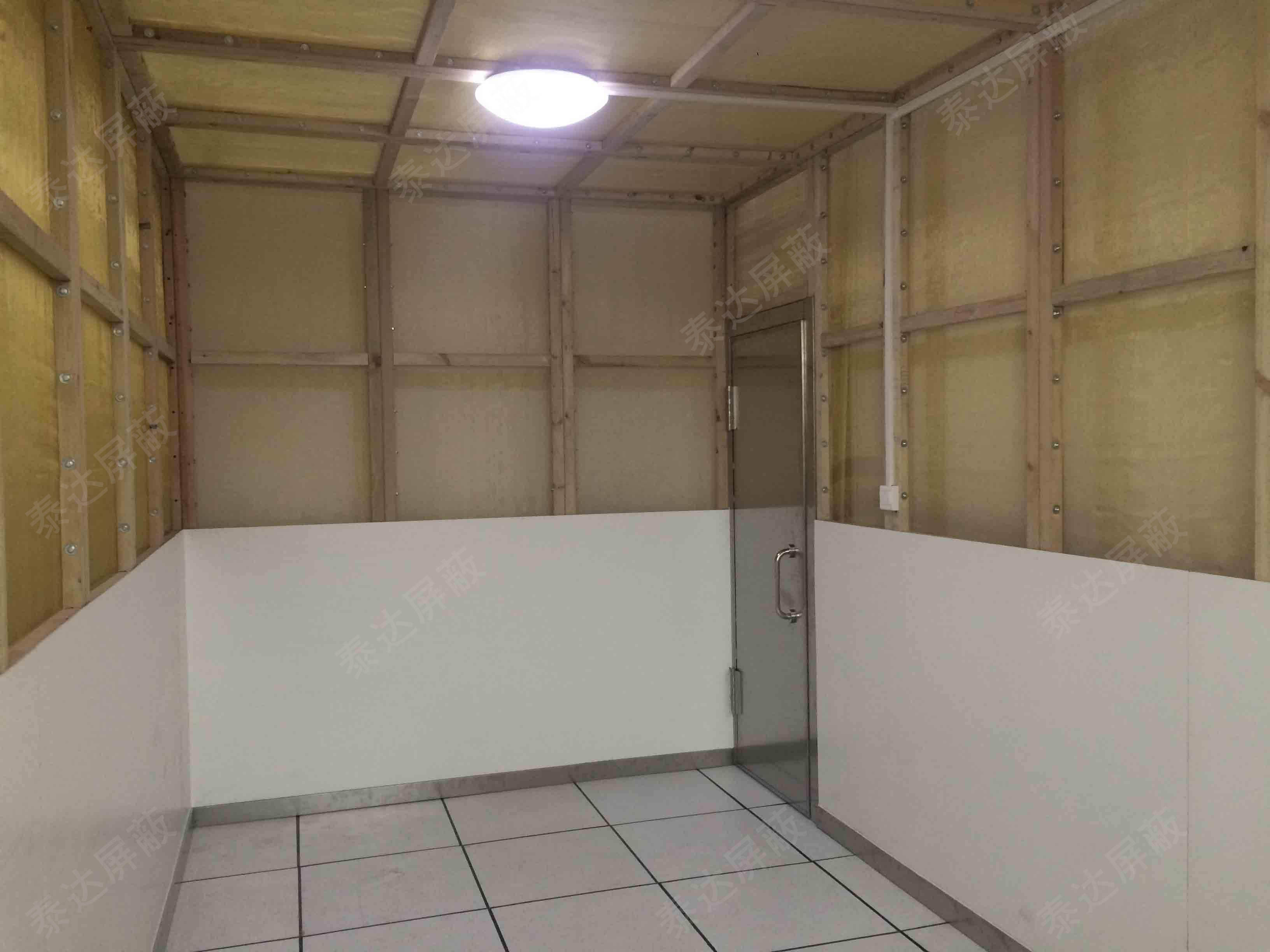 1、四面墻體和頂部采用雙層銅網(wǎng)作屏蔽層,地面屏蔽層采用1.5mm鍍鋅鋼板或0. 5mm銅板制作。